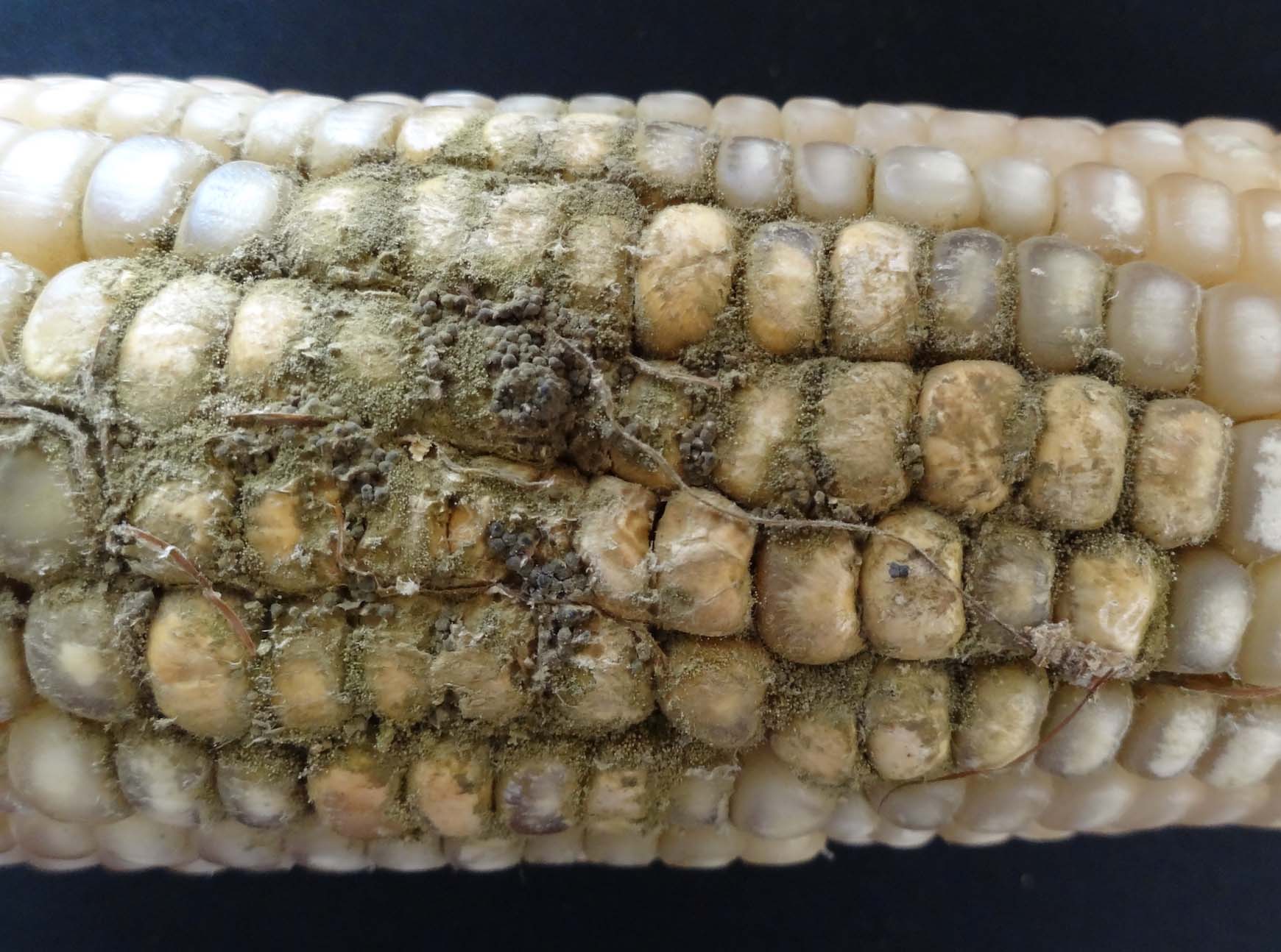 Figura 3: Milho infectado com Aspergillus flavus. Fonte: CIMMYT (https://www.cimmyt.org/)