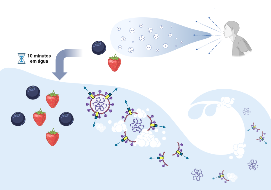 Em paralelo, os pesquisadores investigaram a efetividade da lavagem dos frutos contaminados com água para eliminação dos vírus. Para isso, mirtilos e morangos foram inoculados com SARS-CoV-2 e, após certo período, foram lavados, por imersão, durante 10 minutos com água à temperatura ambiente. Após esse período, os frutos foram processados para os cientistas determinarem o título infeccioso de SARS-CoV-2 remanescente. De fato, os cientistas descobriram que lavar os frutos frescos com água reduziu cerca de 90% da carga viral por grama de fruto. Além disso, eles evidenciaram que o SARS-CoV-2 permaneceu infeccioso por pelo menos uma semana em frutos frescos e por um mês em frutos congelados o que é um alerta já que este alimento é consumido sem qualquer processamento ou cozimento pelos consumidores.