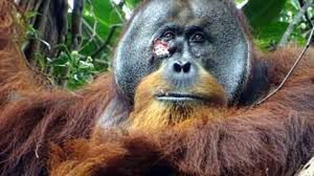 - Active self-treatment of a facial wound with a biologically active plant by a male Sumatran orangutan.